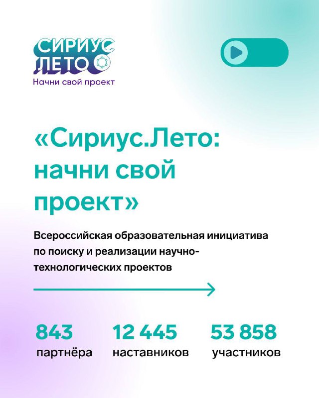 Образовательный центр «Сириус» объявляет о старте регистрации на шестой сезон всероссийской программы «Сириус.Лето: начни свой проект».