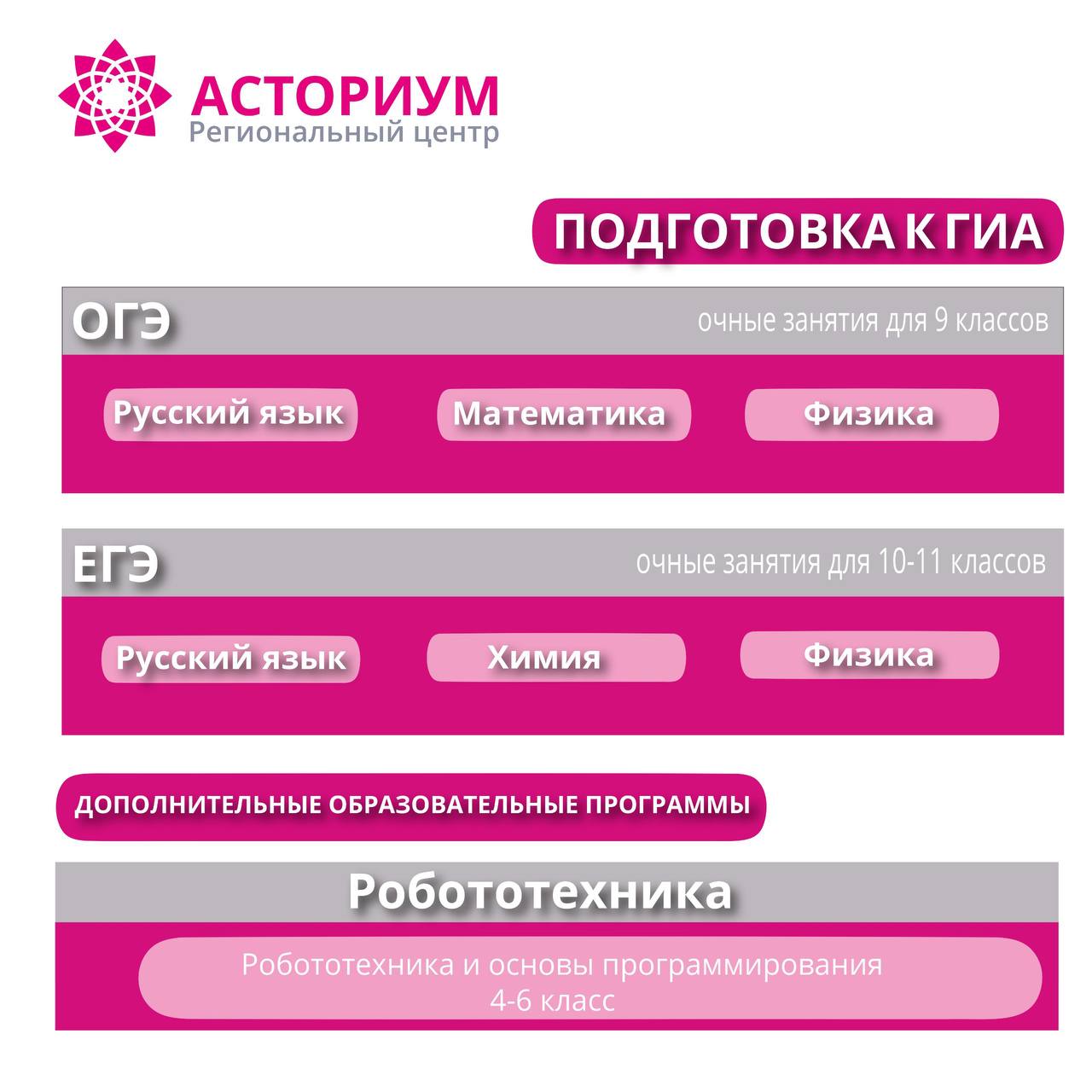 Наши платные программы направлены на систематизацию знаний и эффективную подготовку к государственной итоговой аттестации. Занятия ведут опытные педагоги. Стоимость курсов - 4000 рублей в месяц (8 академических часов).