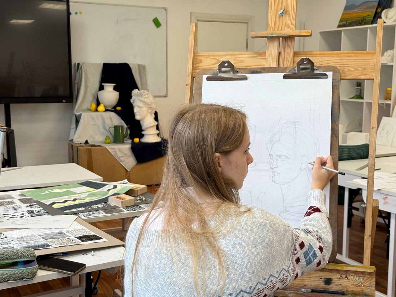 Программа включала изучение базовых понятий, таких как перспектива, построение, компоновка, шлифовка, а также техники зарисовок и набросков. Большинство ребят успешно выполнили многочисленные практические задания, что позволит им в дальнейшем развивать полученные навыки.