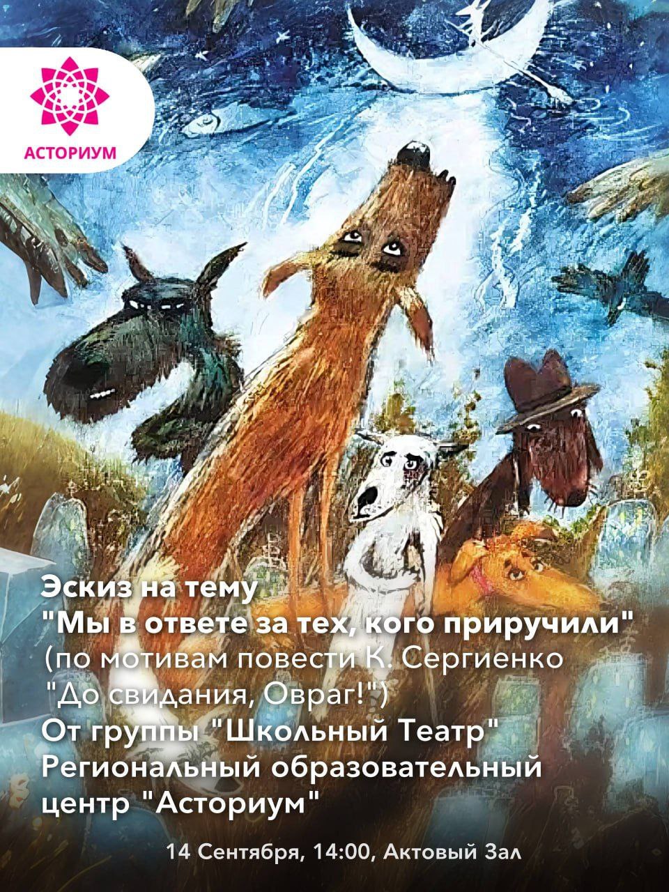 Ребята из разных уголков нашей республики на 10 дней стали единым коллективом, который работал над эскизом спектакля на тему «Мы в ответе за тех, кого приручили» (по мотивам повести К. Сергеенко «До свидания, овраг»). Они совместно с педагогами работали над сценическим образом, сочиняли песни, стихи и пластические импровизации.
