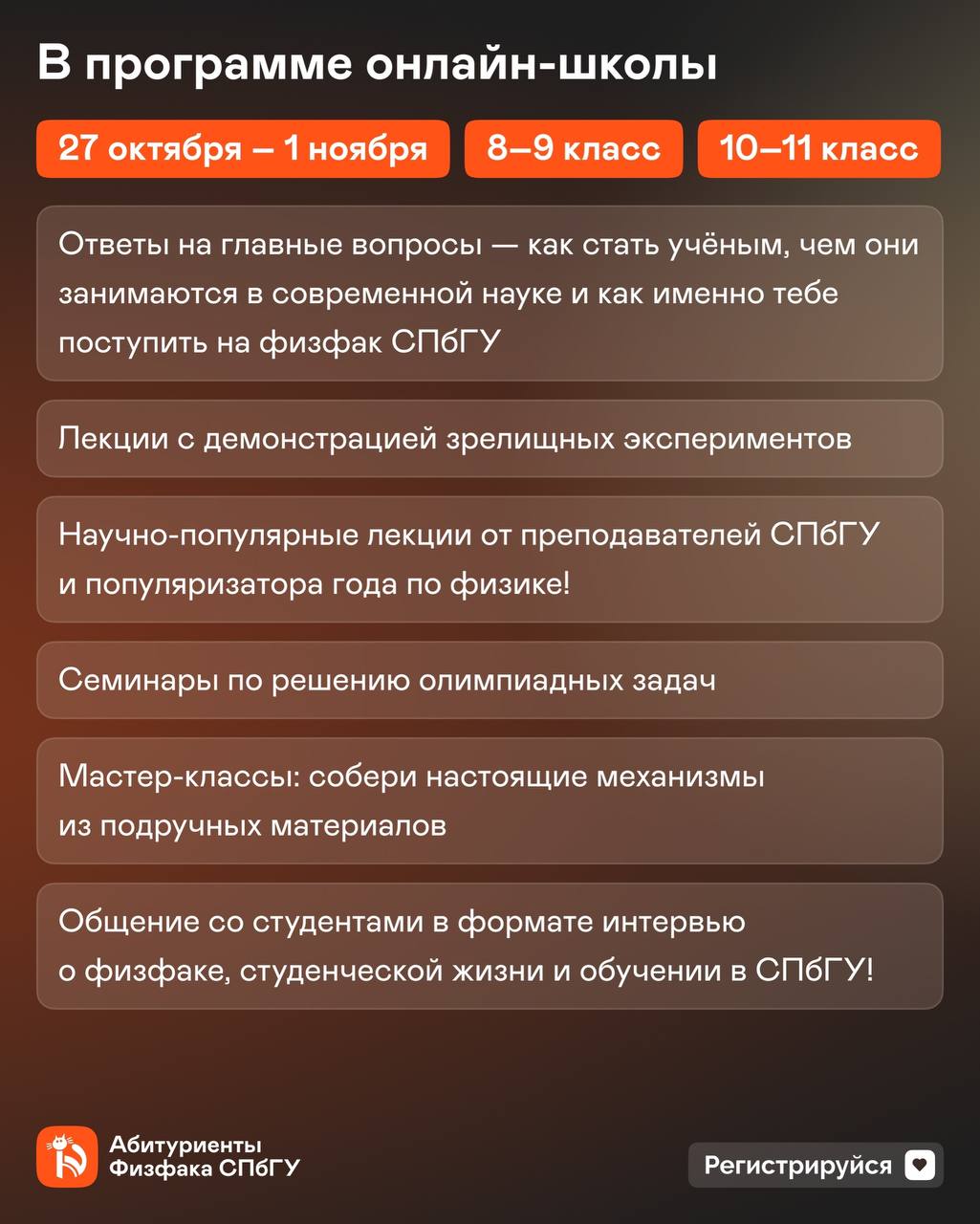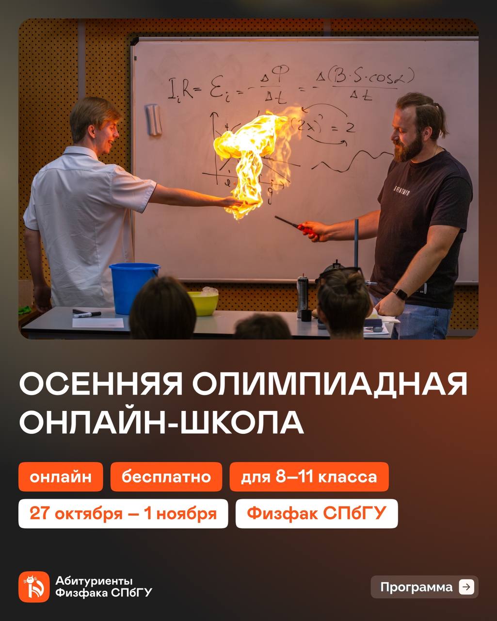 Физфак СПбГУ приглашает учеников 8-11 класса принять участие в осенней олимпиадной онлайн-школе по физике!