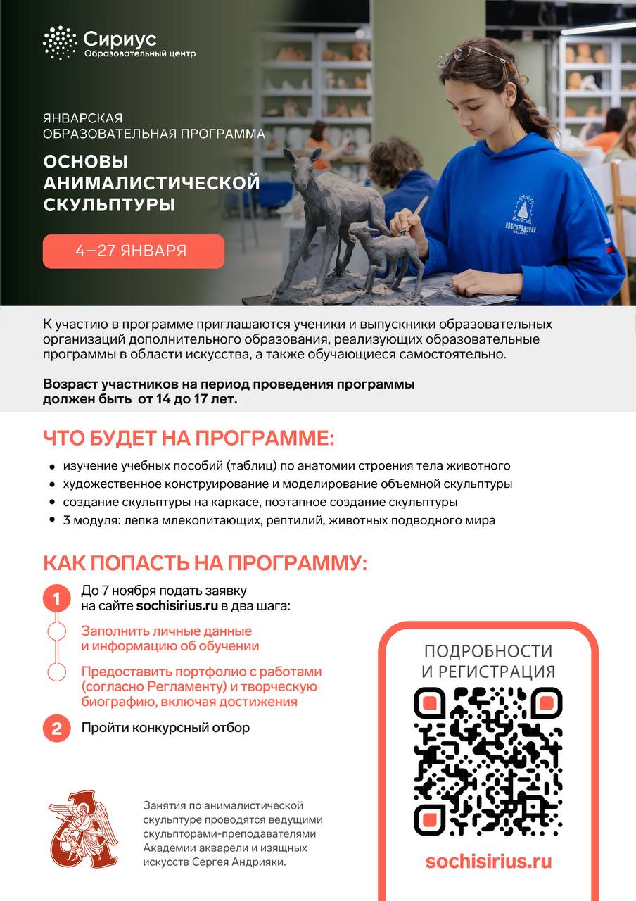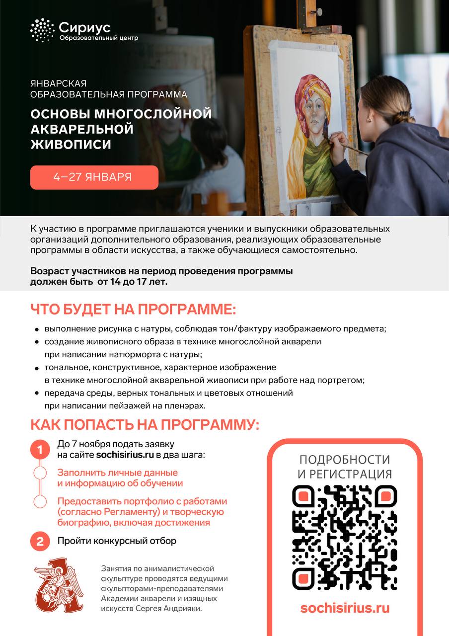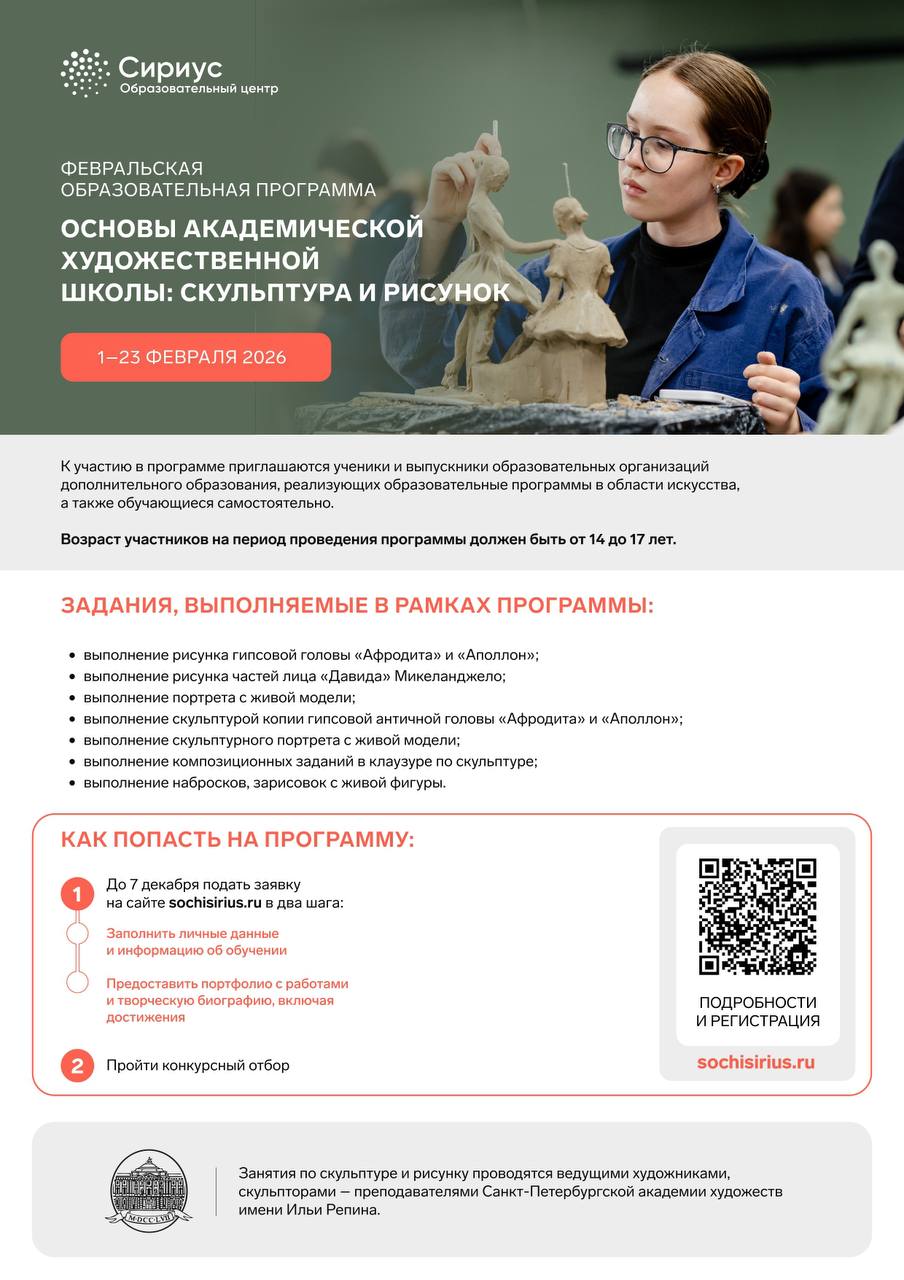 📌 Подробная информация о критериях отбора, требованиях к портфолио и регистрация доступны на официальном сайте «Сириуса»: https://sochisirius.ru